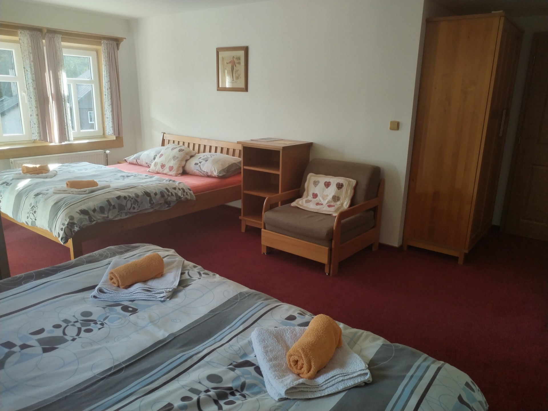 Nabízíme ubytování v 10 útulných pokojích, z nichž každý má svou vlastní koupelnu. Pokoje jsou zařízené jednoduše, ale s citem pro styl a vaše pohodlí. Do pokoje je možné umístit dětskou postýlku. Věříme, že u nás si odpočinete, načerpáte síly a vychutnáte si klid hor.